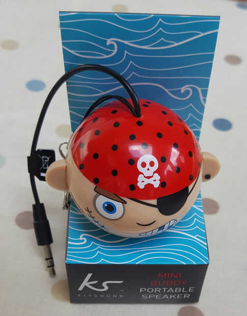 Me topé con una solución en el Maplin local, un Amigo de Mini KitSound - este parecía ideal como era pequeño, tenía una micro-usb batería recargable y era barato en menos de £5. El empaquetado demandó era sorprendentemente fuerte que tomé con una pizca de sal, pero sinceramente me impresionó en el volumen. Como que habíamos comprado la versión "pirata" de mi hijo le preguntó si haría Alexa hablar como un pirata - creo que sería un gran desarrollo para el futuro!