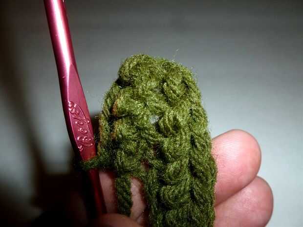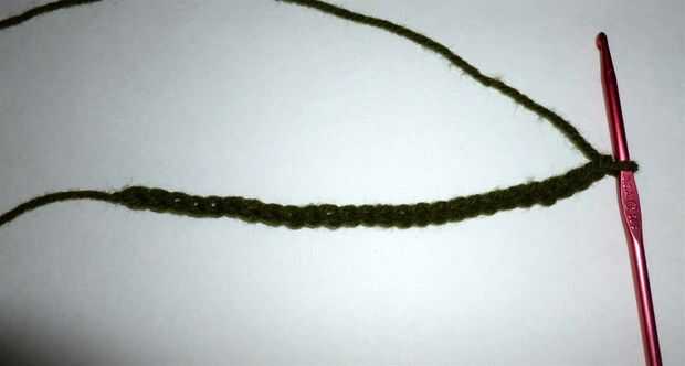 CH 21, sl st en 6th st de gancho. Terminar y tejer en cualquier extremos sueltos.