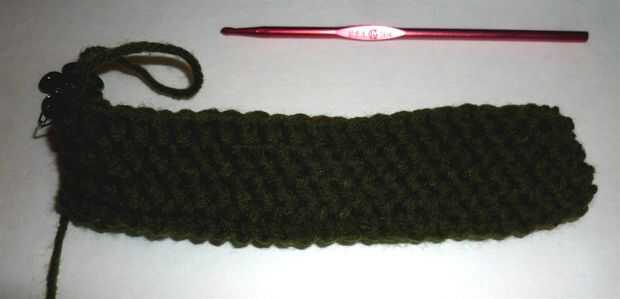 SC en la calle próxima de vuelta abajo y mover punto marcador en nuevo st primera; en cada ª en ronda hasta la medida de la pieza acerca de 6-1/2 pulgadas. Termine.