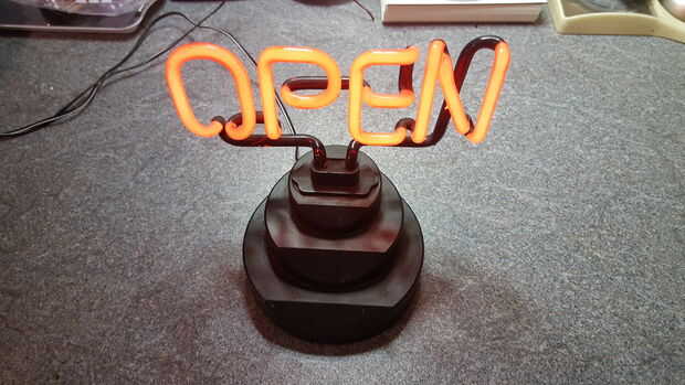 De todos modos que claramente no sucedió, entonces nos mudamos de casa y llevo 6 meses convertir el garaje en un taller de bar en su lugar. Recientemente cuando he recogido algunas muestras de neón usados para la barra (2 por 10 libras) que tenía la idea de hacer un signo infinito "Abierto" con uno de ellos. El bar es pequeño pero yo lo llamo la barra de progreso, ya que es como un depósito de chatarra de la tecnología a través de las edades. En algún momento que voy a hacer un gigante Arduino powered LED barra de progreso, para caber el nombre. Todavía lo suficiente de que, en con el instructable!