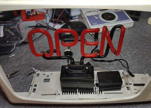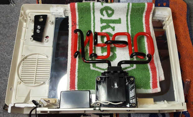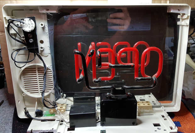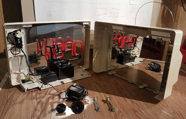 En este momento cada una de las piezas del caso estaba limpia y tenía su espejo firmemente fijo. A continuación atornillados nerviosamente el montaje de neón en el caso, tratando de no dañar el bulbo o espejo unidireccional en el proceso.