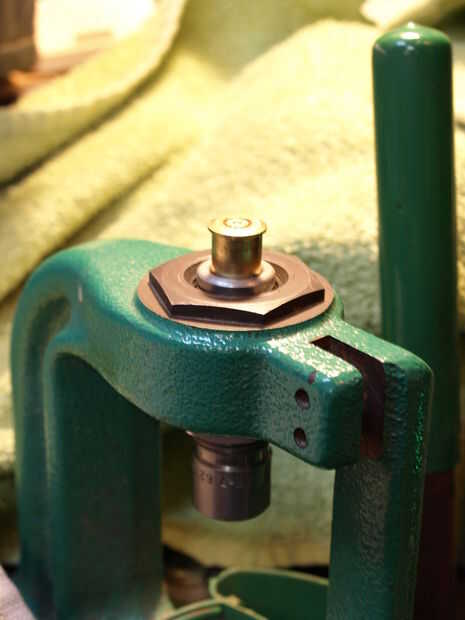 Bastante más que simple. Ligeramente el caso de lubricación y caer en el dado. Yo generalmente presionar ligeramente para que el caso de meneo en el troquel.