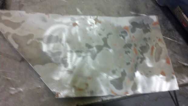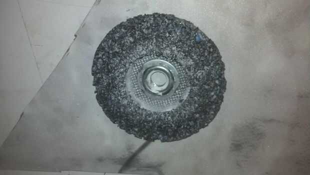 este disco encaja en una amoladora angular y creo está hecho de nylon y una resina abrasiva para celebrar juntos. Este disco es muy especial porque no es abrasivo para destruir el metal pero se destruyen sobre todo lo demás. ahora la parte mala, cuando se trabaja en metal fino como este 20 calibre acero se acumulan calor muy rápidamente y deformación hacia fuera o quemar este acero fino como se puede ver en la foto con el metal más oscuro. pero hará el trabajo rápido de la capa y es una gran cosa a usar para limpiar un potencial área de soldadura.