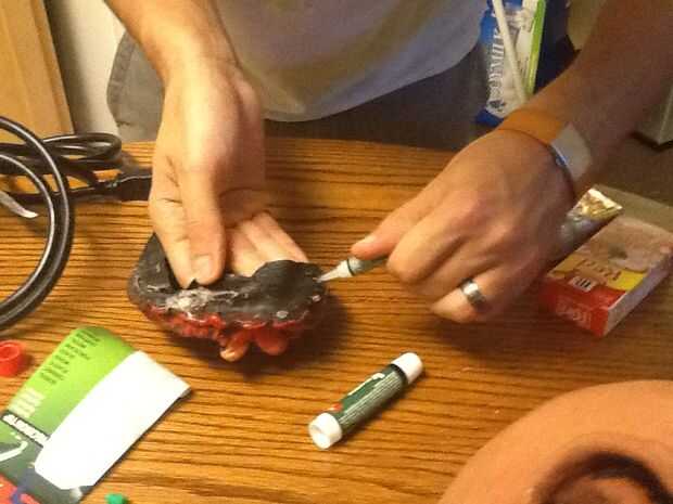 Conseguir el relleno de nuevo allí, luego pegue loco cerró con el tubo que viene a través del orificio de la aorta.