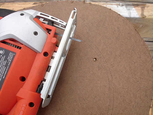 A continuación, coloque la parte superior de punchbowl sobre la pieza cortada de paneles y repita los pasos anteriores. Puede ayudar a hacer un agujero dentro de su círculo primero para que pueda insertar hoja de su rompecabezas. Su recipiente debe ser capaces de descansar en su corte sin caer a través.