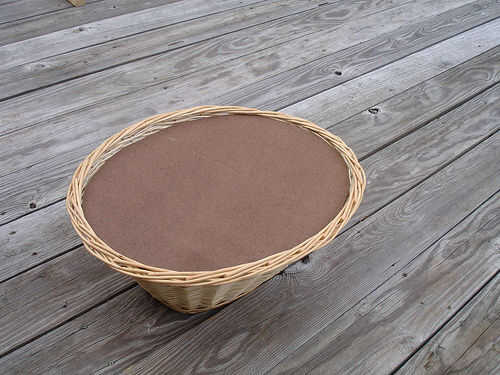 Comenzar por trazar la forma general y el tamaño de su cesta en la pieza de revestimiento. (Foto 2) Dentro de su línea trazada, dibujar otra línea media pulgada más pequeña. Corte la placa siguiendo esta línea. Desea que esta pieza de revestimiento de madera para descansar bien en la parte superior de la cesta (Foto 3)
