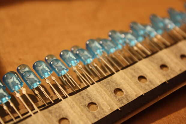 - Por-agujero LED azul: $17,60 por 100 [Mouser]