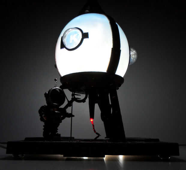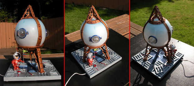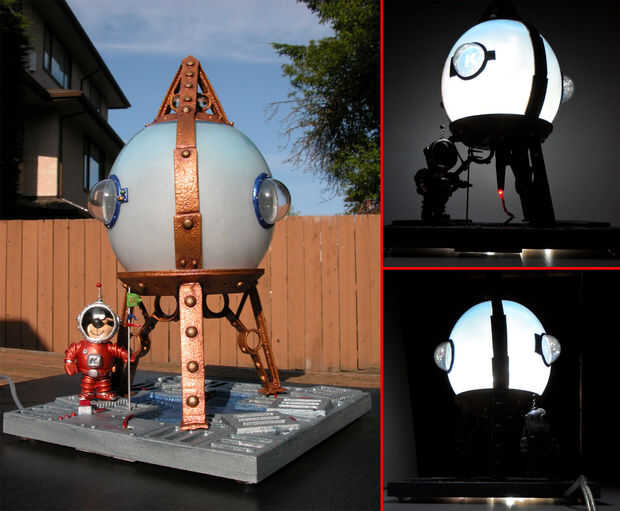 Unos meses después de ver a mi amigo Dan Sawatzky hacer un submarino fuera de una pecera en el dólar tienda y vieron un recipiente redondo flor y pensaban... hmmmm, no quiero hacer un submarino... pero... tal vez algo más... ¡ Un cohete! .. .y de mi mente fue.