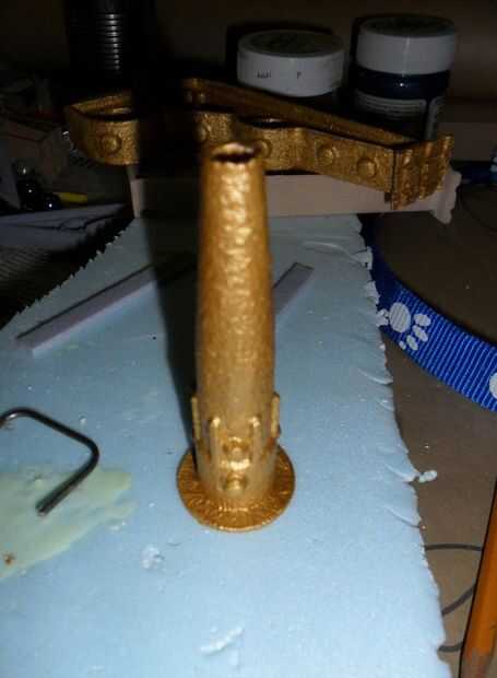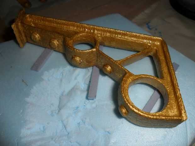 I aplicar remaches a todo, todo había preparado y entonces aplica la primera capa de pintura moderna maestros Metallic Gold.