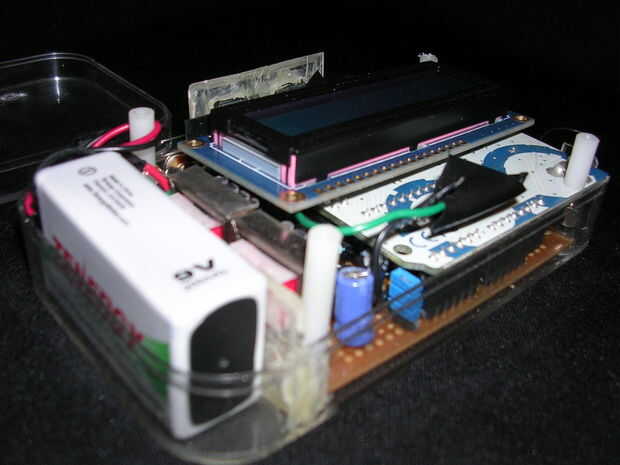 Este TENS está basado en un Arduino UNO, escurr una batería de 9 voltios y sólo casi encaja dentro de un estuche de iTouch translúcido. Interfaz de usuario incluye un codificador que funciona como un botón de presión y dos botones adicionales como una pantalla de LCD 16 X 2 caracteres. Arduino controla un canal dual 10 bits de digital a analógico convertidor para controlar la intensidad de los impulsos. El código de Arduino maneja la interfaz de usuario al mismo tiempo también controla la sincronización de los impulsos eléctricos que tienen horarios que van de 20 Hz a 150 Hz.