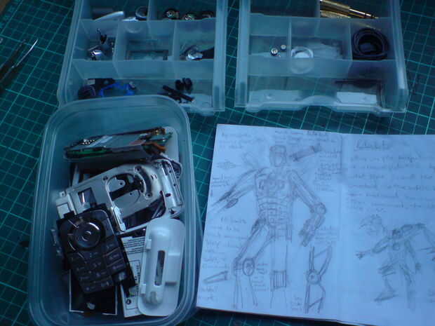 Cuando se trata de un proyecto como este, uno de la reutilización de componentes existentes en lugar de comenzar desde cero, es importante tratar de averiguar lo queremos conseguir con las piezas básicas que has recogido, antes de empezar a cortar y pegar. Este teléfono en particular fue una elección afortunada a utilizar, ya que tiene una cáscara de aluminio y muchos componentes separados, perfecto para hackear para arriba en pedazos de la armadura"transformador"