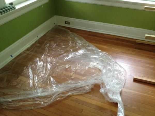 Con una pintura plástica protección hoja tapa las paredes y pisos alrededor del armario para proteger a la sala de la pintura utilizada.