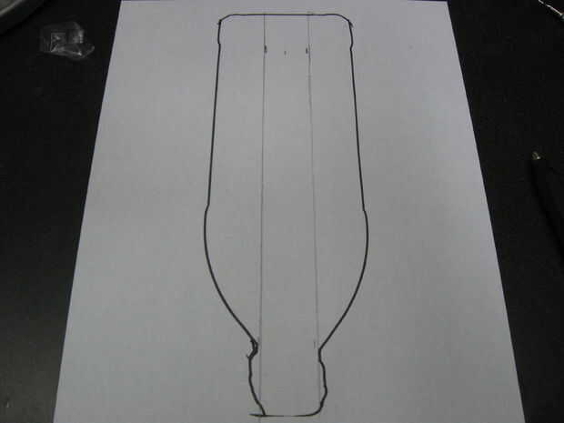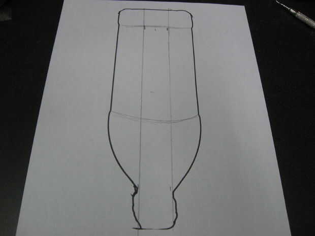 Mida la abertura de la botella y hacer 2 líneas paralelas que se extienden desde el cuello hasta la base.