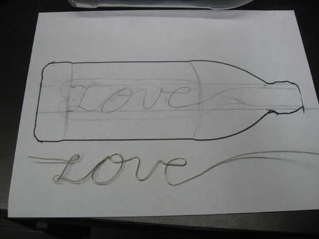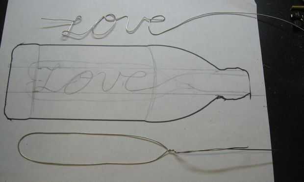 Necesita 2 elementos de alambre separadas para hacer un trabajo de luz de resplandor. Decidí hacer un lazo estrecho que es el mismo tamaño que el mensaje pero solo amplio suficiente para encajar en la apertura de la botella.