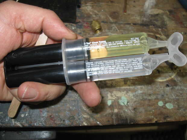 Mediante una tubería de 1/4 pulgada de cobre, pegar los tapones con un epoxy de parte de servicio pesado 2. Inicialmente estaba usando un quick set tipo pero tuvo que cambiar a un tipo nominal de 2 toneladas de Devcon.