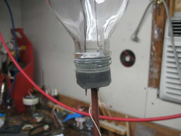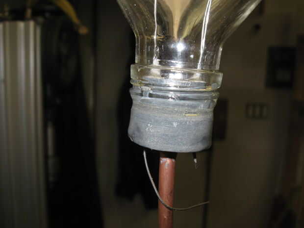 Cubrir las partes expuestas de la Asamblea del tapón con el epoxi y cuelgue la botella boca abajo para curar para que el epoxi no gotea dentro de la botella. Asegúrese de apoyar el tapón para que no caiga hacia fuera.