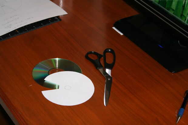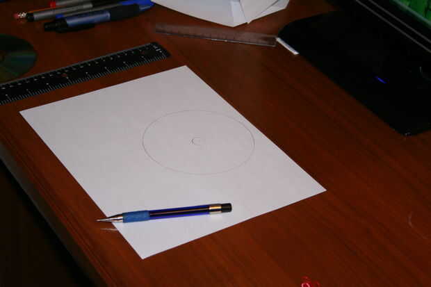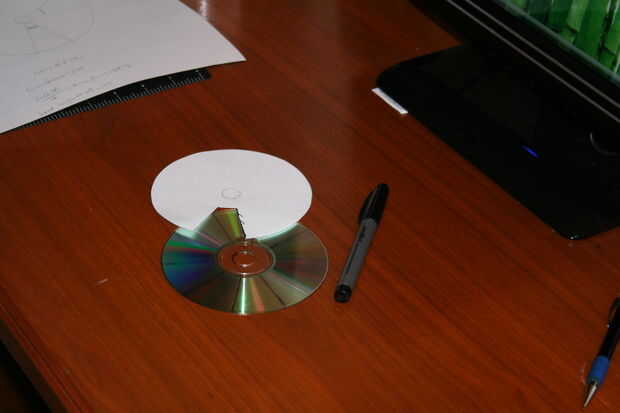 La longitud que se obtendrá será de dos puntos en el exterior del CD. Utilizar la regla para dibujar una línea recta de los puntos al centro del CD y tendrá sus segmentos.