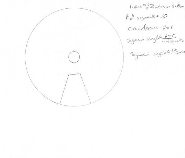 (2 * pi * 2.38inches) /(# of segments) = longitud de cada segmento