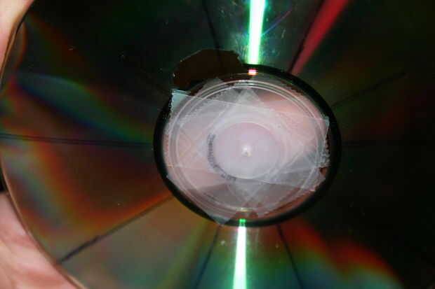 Va a utilizar un clip de papel como su eje por lo que para hacer la vuelta de CD sin problemas tienes que poner dos trozos de cinta adhesiva transversalmente a cada lado como se muestra en la primera foto abajo.