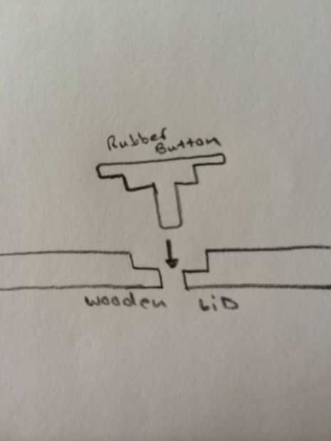 pongo los marcos y todo lo que quedaba era el botón. no quería sólo un botón de plástico que sobresale, creo que parece cutre y barato por lo que me encontré con una cubierta de teclado de goma de un antiguo gps tiene ahí y cortar uno de los botones de itthe problema con esto era que se caminó y necesitaba perforar el agujero de 3 mm para el botón y luego un agujero de 8 mm a mitad de la tapa para el hombro. (ver dibujo) para hacer esto usted realmente necesita una fresadora como los bits son terminó plana.