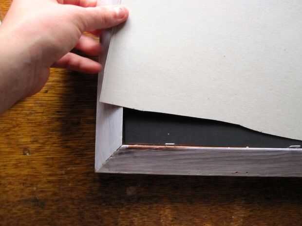Desplegar los corchetes del metal en la parte de atrás y retire el papel cartón. Es probablemente una buena idea para sacar el cristal y lavarlo realmente rápido. Seque el cristal y deslícela detrás. Luego deslice en tu poema y remplazar con el respaldo de cartón. Volver a doblar las patillas de metal.