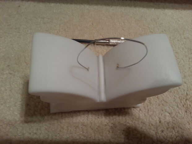 Deslice el cable por el agujero, uno a la vez en forma de V arcos voluntad auto seguro en los bordes interiores.