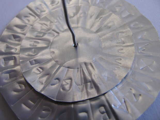 Poner un clip de papel a través de y doble los extremos sobre ella o podrían poner pegamento caliente
