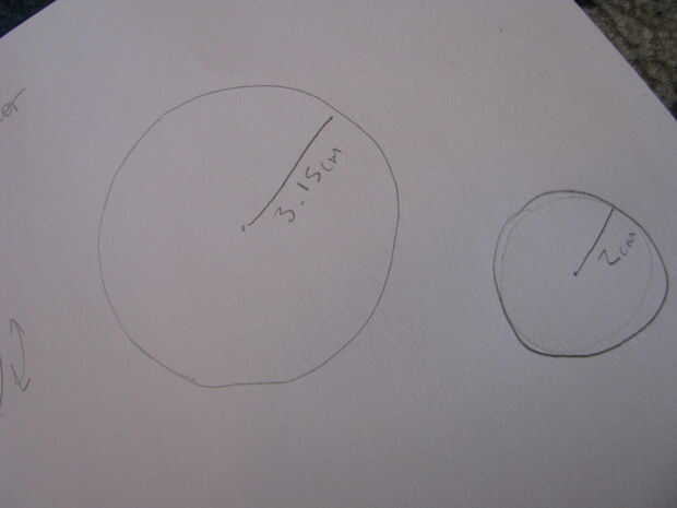 Radio del círculo pequeño es de 2 cm y el radio del círculo grande es de 3 cm.