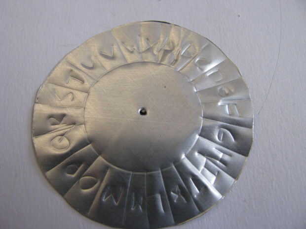 Había tallado el modelo de cera de la joyería.Usé una mano fresado el cortador y destornilladores afilados pequeños.Las letras son en relieve.Tierra de las Letras con papel de lija áspero para obtener estas líneas de izquierda a derecha.Paso 1: El ho