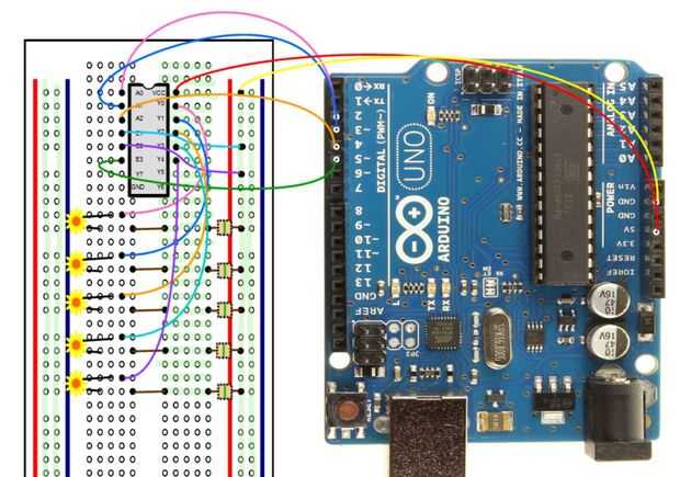 Conecte las salidas Y0 Y4 para lo 5 diodos LED como se muestra.