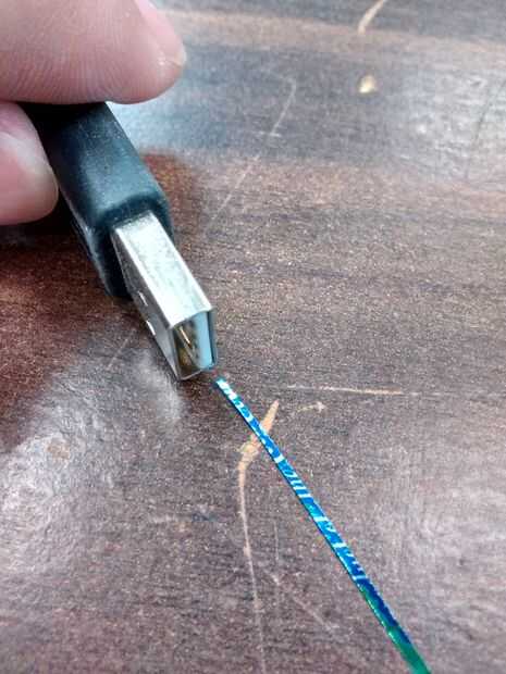 Que desea ser aproximadamente tan ancha como el plástico dentro de un conector usb es gruesa, y desea ser tan largo como sea posible.
