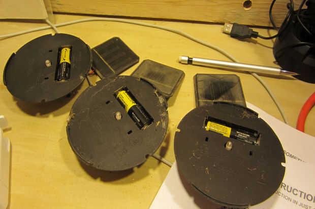 Materiales: Neumáticos viejos de Máquina removedora de nieve, viejo abrelatas de la puerta del garaje, sensor de puerta de garaje, Diana antigua por sus pantallas LED y chip de sonido.