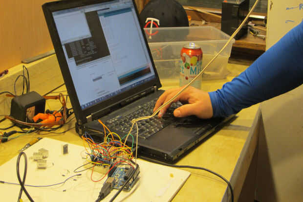 Tim, Matt y Peter se la puede configurar contador y están viendo si tienen suficiente tiempo para incluir un robot bailando! Todos necesitamos bailar robots. (Realmente se parece mucho al robot de Instructables!)