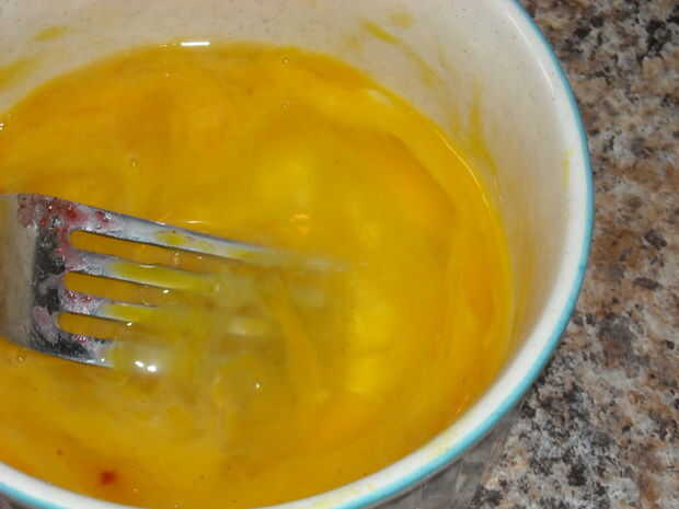 Coge el huevo y batir con 1 o 2 cucharadas de agua.