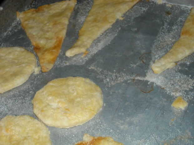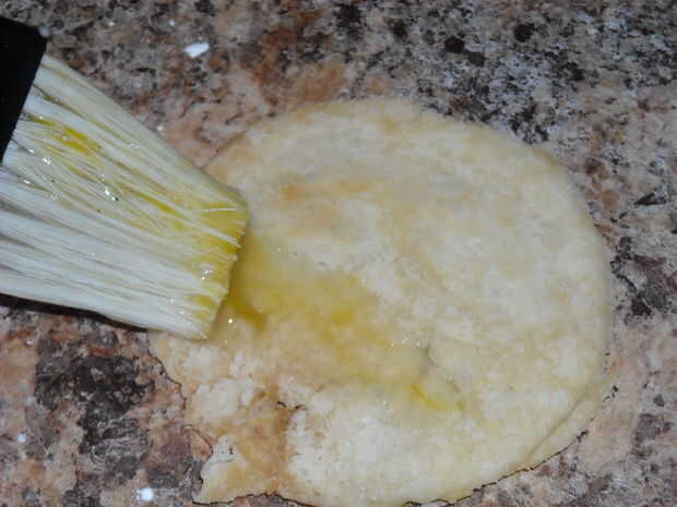 Este cepillo encima de tus círculos y triángulos. Esto les ayudará a brown para arriba maravillosamente en el horno.