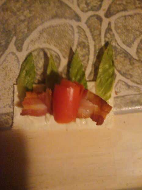 este verano nuestro cultivo de tomate se ha podido producir a causa del calor. Mi esposo me trajo tres hermosos pequeños tomate de nuestro jardín hoy. Oh, ¡ eran tan dulces! Decidí hacer algunas BLT's de adentro hacia afuera. Estos adorables BLT's se