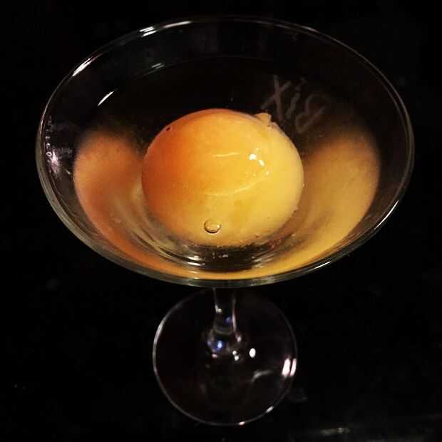 Bola de helado de zumo de naranja bañado en vodka!
