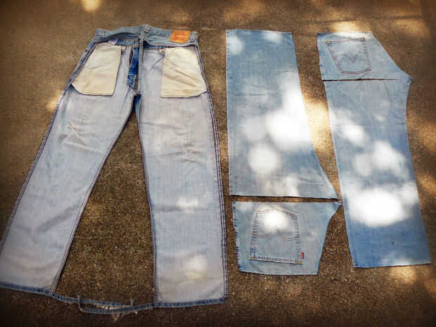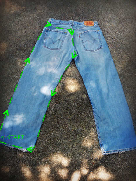 Nivel con la parte superior de la bolsa, cortar a través de panel, separando el bolsillo de la pierna.