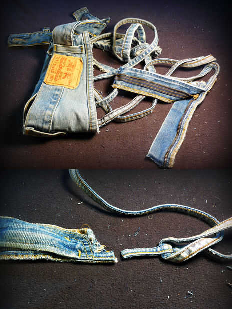 Hay una delgada franja del dril de algodón del forro en la parte delantera de la mosca. Una vez que han rasgado la cinta libre, se puede sólo lograr el respaldo.