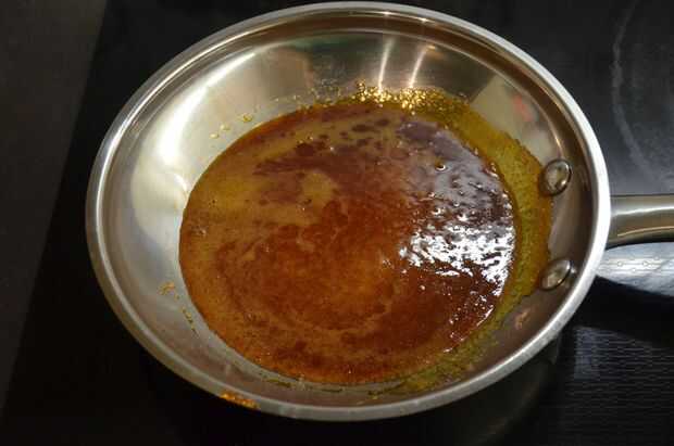 Lugar 75g de azúcar en una cacerola pequeña, bases pesadas. Cocine, sin revolver, a fuego medio hasta que el azúcar se derrite y vuelve un color caramelo claro. Vierta en el molde.