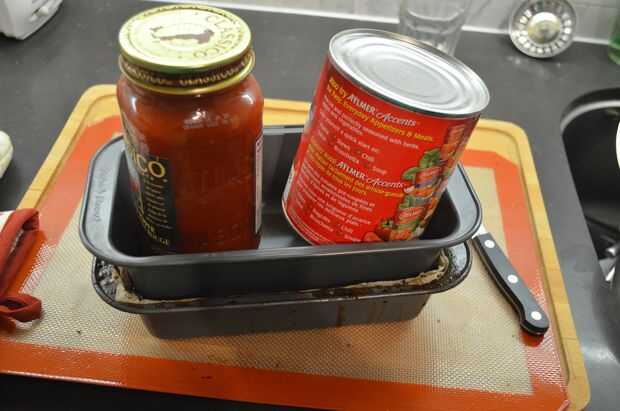 Envolver un trozo de cartón en plástico y póngala sobre la parte superior de los confitados. Pesar con latas de comida y enfriar en la nevera durante la noche. (He encontrado poniendo otro molde overtop facilitó el proceso - ver fotos)