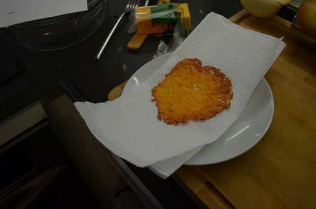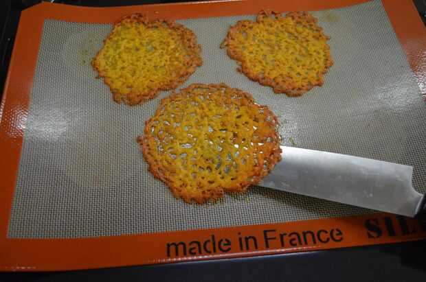 3. Hornear durante 10 minutos hasta que el queso tiene una apariencia de encaje y color dorado.