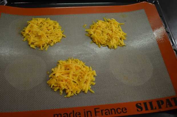 2. Coloque puñados de cheddar en la almohadilla y coloque la bandeja en el horno.