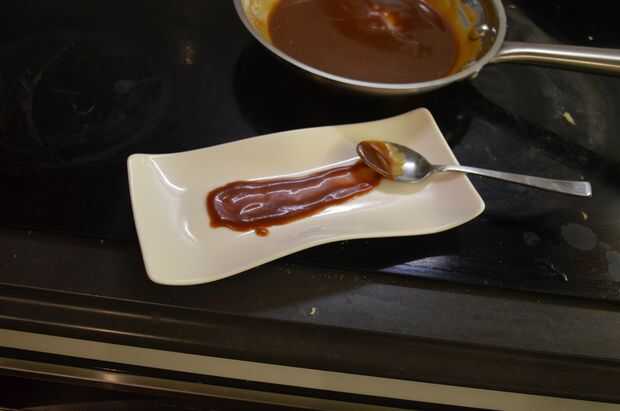 2. Prepara el plato poniendo una capa de salsa de caramelo salado en la placa y aspersión de la sal sobre la parte superior.