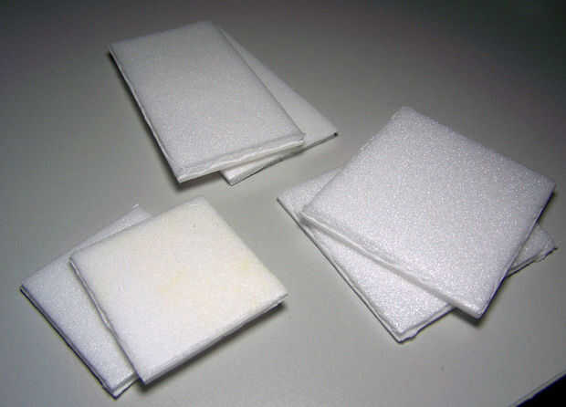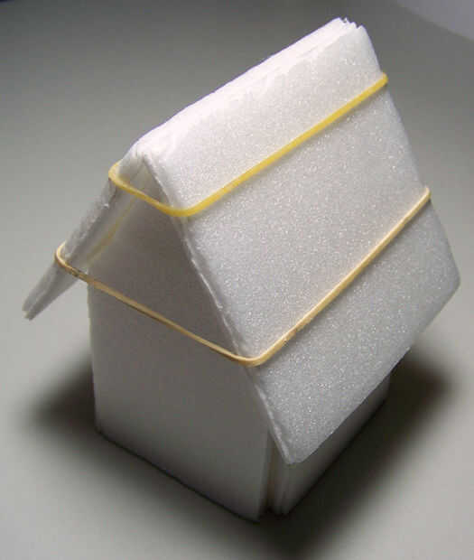 Corte hacia fuera y pegar en la casa. utilizar bandas de goma para fijar el poliestireno a los lados y extremos hasta que el pegamento se seca.