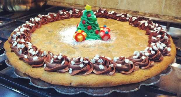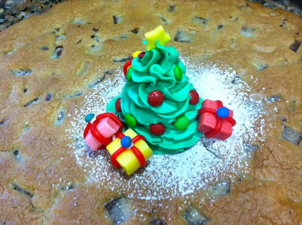 me voy a una fiesta esta noche así que hice una enorme galleta de Navidad! Super fácil y delicioso. Hice el árbol de manteca sobre los pasteles y los regalos de starbursts, tire n' pelar Twizzlers y puntos.