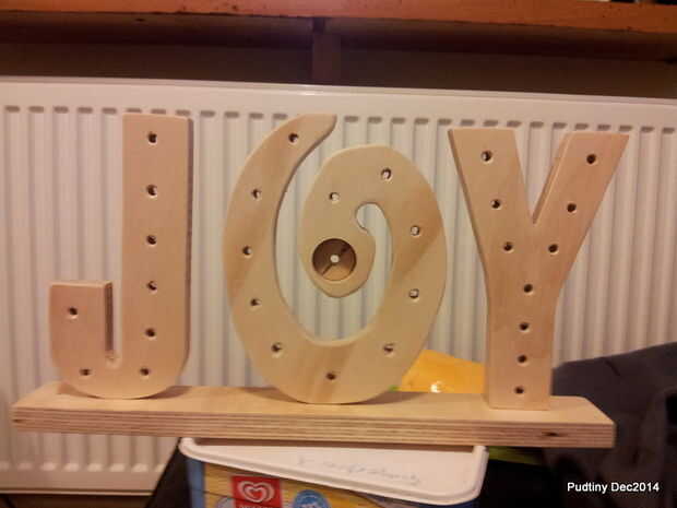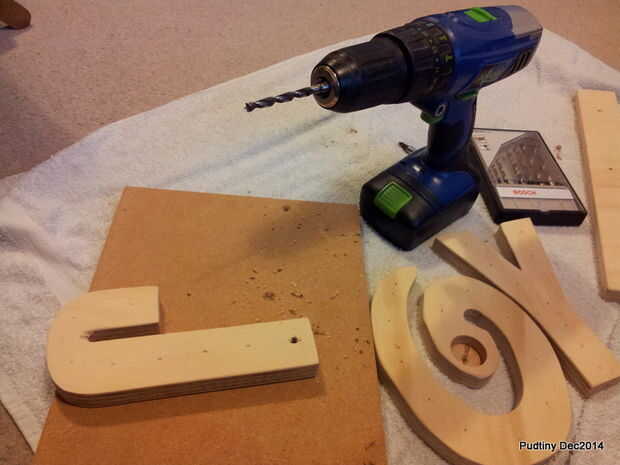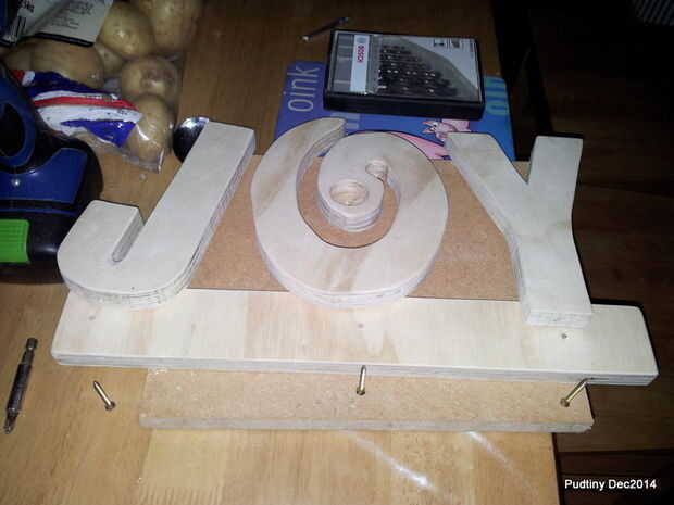 El soporte de la base fue hecho de una longitud de la misma madera y las letras fueron fijadas con un tornillo a través de la base.