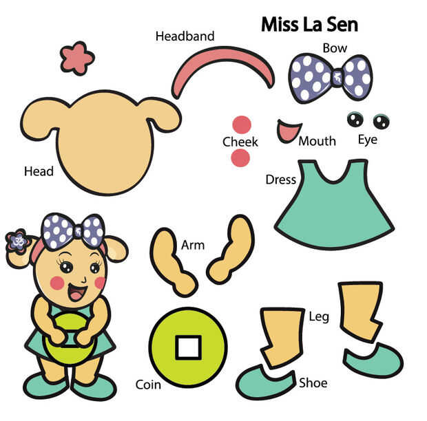 Miss La Sen es el símbolo de la suerte, prosperidad... Una Miss La Sen colgantes decoración suerte en año nuevo Lunar hará más interesante la casa.Paso 1: Descargar este patrón e imprimirlo en papel de tamaño A3.Paso 2: Cortar la cabeza de la espumaP
