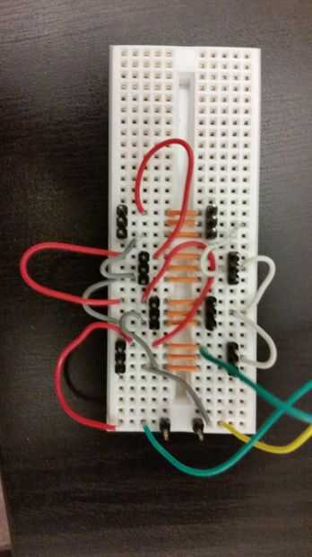 Arriba se muestra la imagen de Fritzing para el protoboard así como mi protoboard terminado.