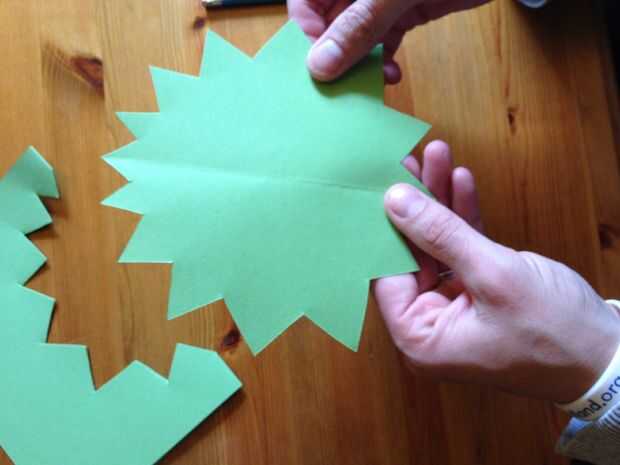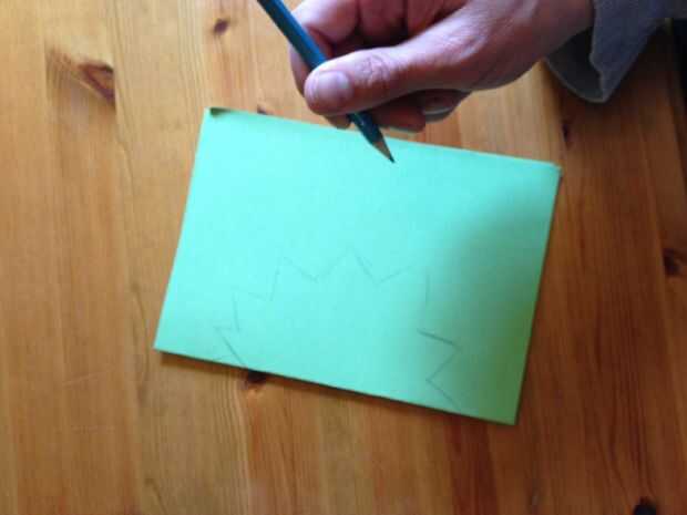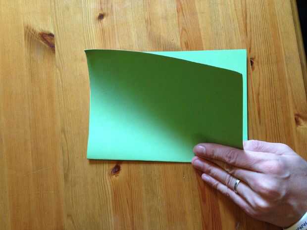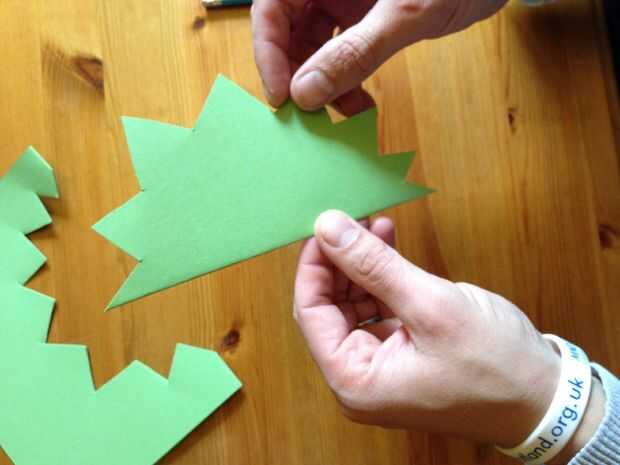 luego realizar dos tiras de la izquierda sobre la tarjeta verde y una cadena de papel elástico como se muestra aquí